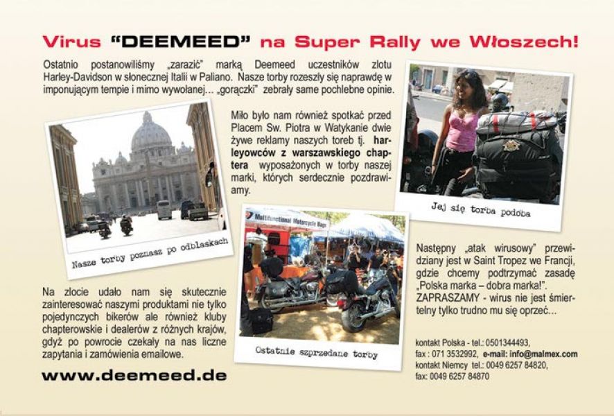 Jesteśmy producentami toreb motocyklowych z uniwersalnym systemem mocowania. Torby te są regularnie testowane na wszystkich kontynentach i w różnych warunkach klimatycznych, przebyły tysiące kilometrów abyś mógł pewnie, wygodnie i bezpiecznie podróżować po świecie.
